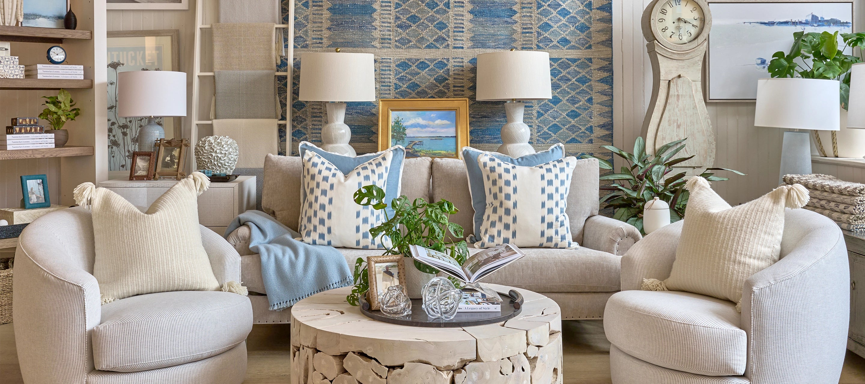 Our handwoven textiles, home decor, and furnishings are inspired by Nantucket’s natural beauty and rich traditions, pairing craftsmanship and coastal elegance. Each piece is thoughtfully curated to bring the island’s timelessness and relaxed sensibility into your home.